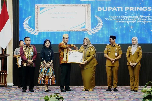 PRINGSEWU – Bupati Pringsewu Riyanto Pamungkas memperoleh piagam penghargaan dari Menteri Hukum (Menkum) RI Supratman Andi Agtas.